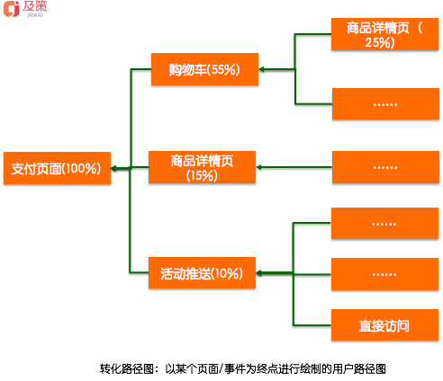 轉化路徑圖,以頁面/事件為終點進行分析。下面談談轉化路徑圖的作用: