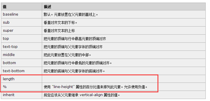 查找 vertical-align 的屬性就會發現有length 和 % 兩個屬性
