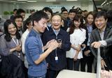 12月13日,國務院總理溫家寶到北京中關村考察并與部分企業負責人座談。這是溫家寶在百度公司考察時,試用手機語音搜索